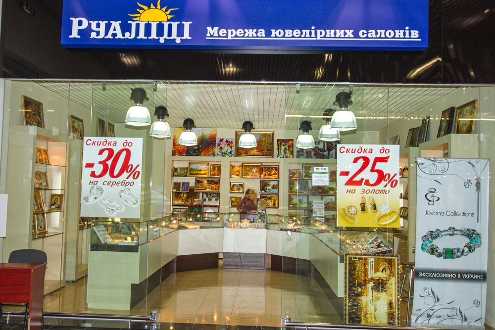 «Руалиди» предоставляет высококачественный выбор изделий современного и классического дизайна из красного, белого и жёлтого золота, изделия из серебра, янтаря, жемчуга а также картины, иконы, эксклюзивные книги и сувениры. Широкий ассортимент товаров и торговых марок обеспечивают крупнейшие украинские и зарубежные производители стильных и качественных ювелирных изделий.